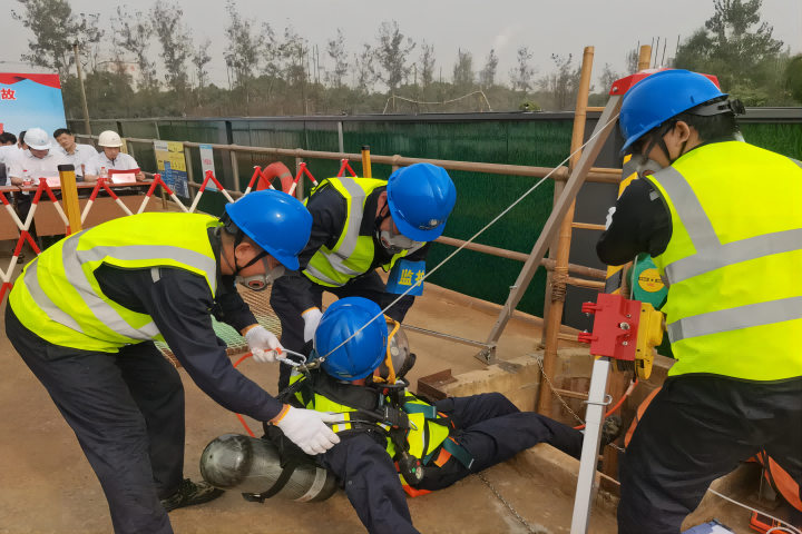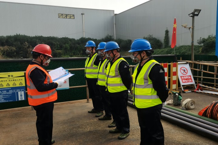 本次演練分為生產(chǎn)車間藥劑池清理作業(yè)事故應(yīng)急預(yù)案演練、危險(xiǎn)化學(xué)品甲醇泄漏事故應(yīng)急救援演練、工業(yè)廢水超量應(yīng)急預(yù)案演練和轉(zhuǎn)輸口水質(zhì)超標(biāo)應(yīng)急管控演練等四個(gè)科目,分別模擬藥池清堵作業(yè)人員中毒、甲醇運(yùn)輸車藥劑泄漏、工業(yè)廢水突增超量和轉(zhuǎn)輸口水質(zhì)超標(biāo)事件。演練按照預(yù)案開展應(yīng)急救援和調(diào)度處置操作,最終圓滿完成各項(xiàng)任務(wù),達(dá)到了預(yù)期效果。