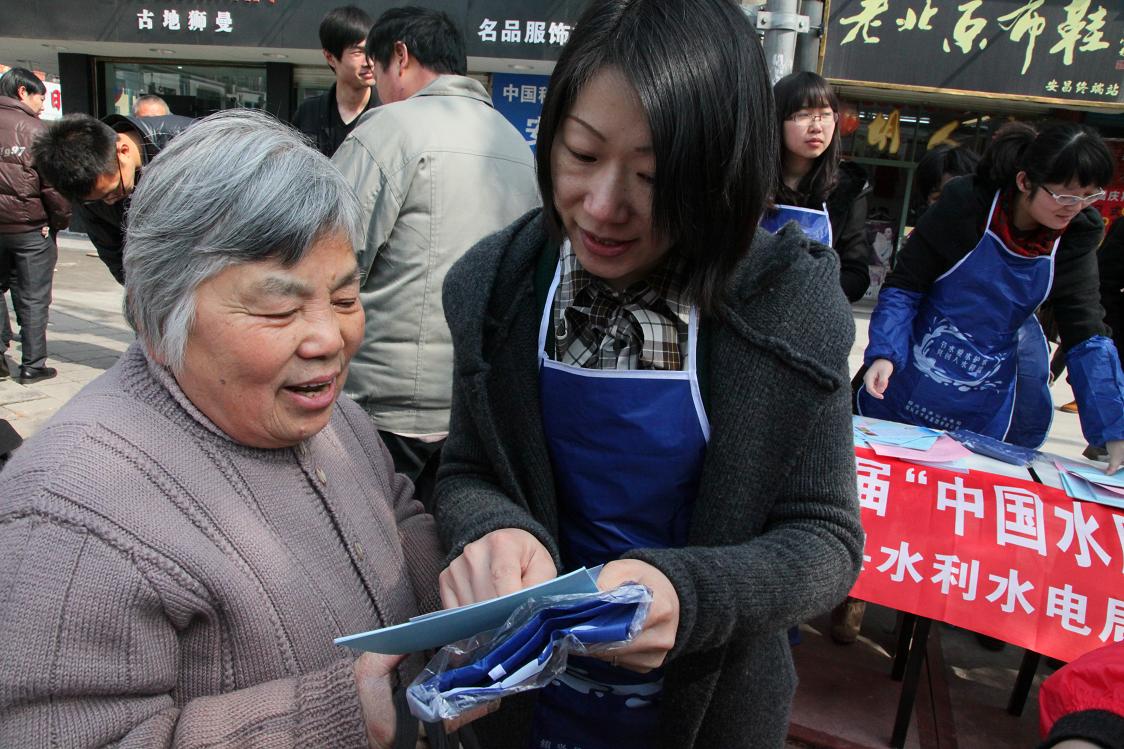 圖為工作人員向過往的居民宣傳節水、護水知識