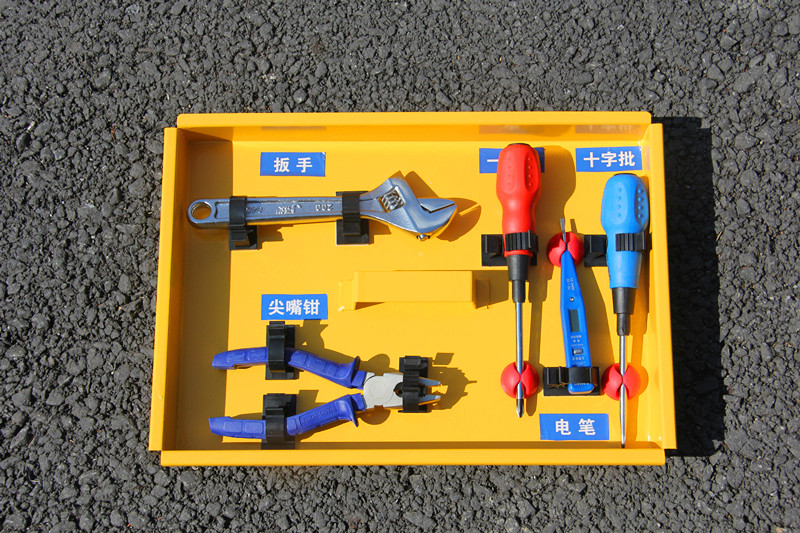 一箱:指職工自行設計的雙 層箱式結構工具箱,內有污水取樣器、PH 試紙、電筒、窨井起蓋 器等常用維修器具及巡檢記錄本等物品。
