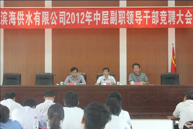 10月9日上午,濱海供水公司在新會議室召開2012年中層副職領導干部競聘大會,公開選拔辦公室、企管部、運行部、工程部、營銷部的9個副職崗位。公司中層以上領導干部、職工代表共62人參加會議。此次競聘,堅持“擇優錄用、德才兼備、注重實績”原則,通過公開報名、資格審查,13名候選人在會上作競聘演講。經現場民主測評、領導表決等環節的角逐,最終8名工作表現突出、群眾基礎好的優秀人才脫穎而出。此次競聘,促進了干部之間的相互交流、學習,同時也使公司更加全面地了解了干部隊伍的優缺點,為公司進一步選拔人才提供了參考。