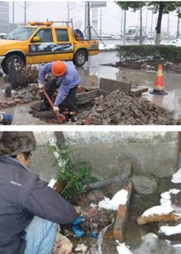 “稽山路和錢陶公路交界處DN100閥門冰裂引起3家企業停水;興越路、裕民路與金柯橋大道交叉口兩只DN300的閥門破損可能引起周圍企業及居民用戶停水4小時;華舍、齊賢靈芝片因管網尚未改造老化嚴重,多處水表、水管凍裂……”,一一個“三來”搶修的信息,個個都敲在搶修人員的心上,為確保用戶能盡快恢復用水,公司搶修人員從元旦開始就沒有休息過。車輛不夠,就動用三輪車、私家車;人手不夠,就加班加點。搶修人員們抱著“不處理完手中任務,絕不休息”的念頭,冒著紛飛的大雪,刺骨的寒風,一直奮戰到深夜,“早一秒修好,就早一秒通水”,供水搶修人員以實際行動踐行服務承諾,保障了廣大用戶的安全用水。