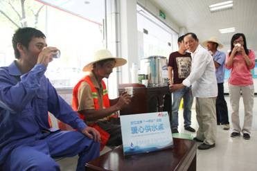 為進一步樹立公司良好的社會服務形象,紹興縣供水有限公司積極響應浙江之聲廣播電臺的倡議,86日起,在柯橋城區、福全鎮、安昌鎮、錢清鎮等16個供水營業大廳開展“一杯水”大型公益活動,為戶外高溫工作者免費提供飲用水和短暫休憩場所。