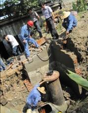 815,位于金柯橋大道紹興縣公共服務(wù)中心附近的小舜江供水柯北支線DN800橋管因外力影響導(dǎo)致主管與排污管焊接處開裂漏水,影響整個柯北工業(yè)區(qū)及安昌、齊賢部分區(qū)域的供水壓力,并導(dǎo)致大量自來水流失,為盡快消除受影響區(qū)域的低壓現(xiàn)象,公司工程分公司在做好防暑降溫的同時,冒著40的高溫,抓緊搶修作業(yè),經(jīng)過近4個小時的搶修,趕在下午5點用水高峰前恢復(fù)通水,保障了老百姓和企業(yè)正常的用水需求。