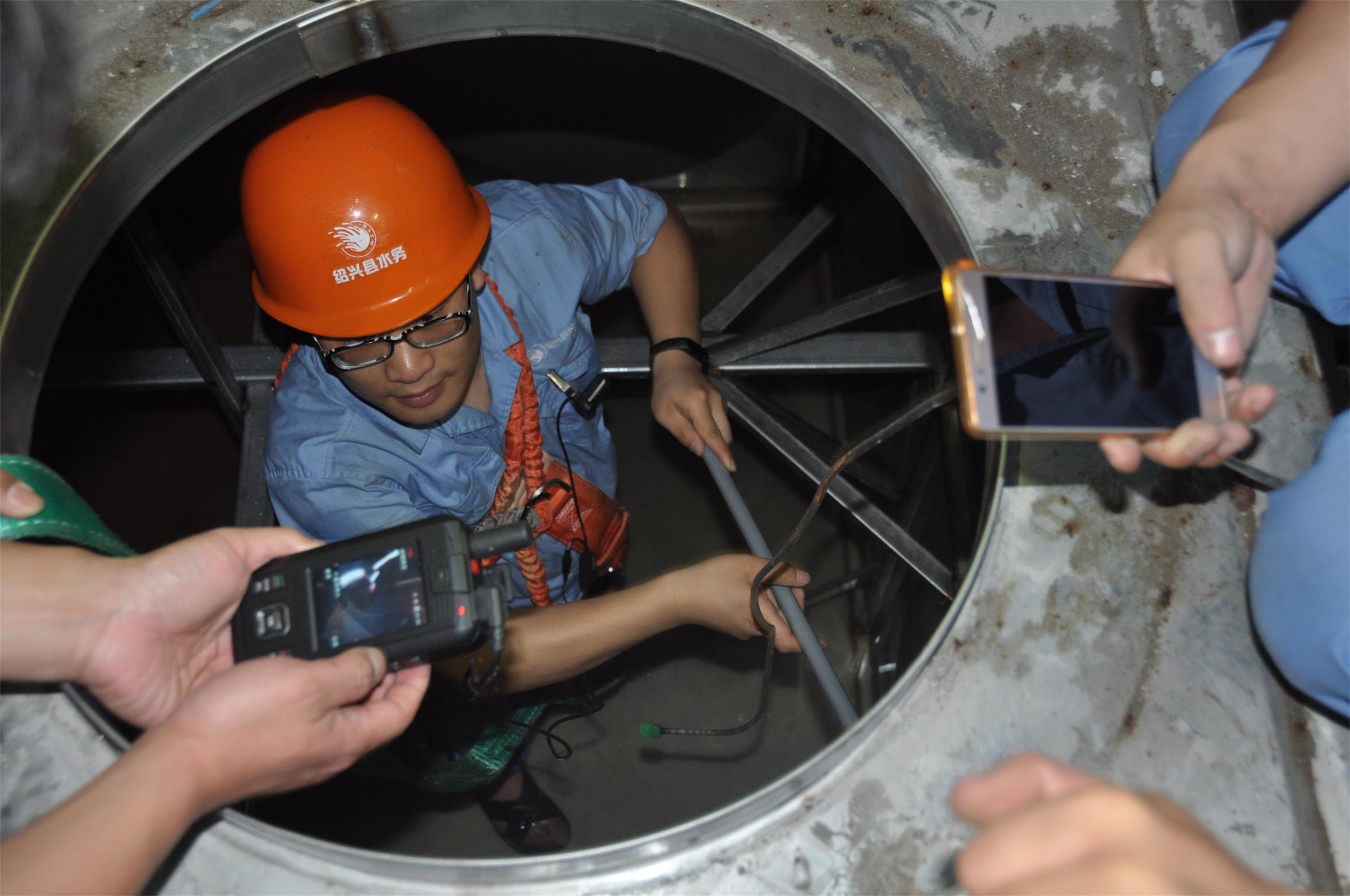 6月20日上午,位于和諧家園小區(qū)6幢地下一樓的水箱房內(nèi),供水公司工作人員正在對箱式無負壓設備水箱進行清洗。