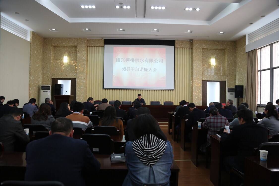 會上,公司領導班子成員及供水分公司經理分別上臺諾廉;公司黨總支書記吳紹文代表黨總支分別與各支部簽訂清廉國企責任書;會上還開展了第四批源頭干部推選,并組織全體與會人員觀看了廉政教育影片。